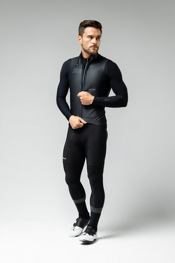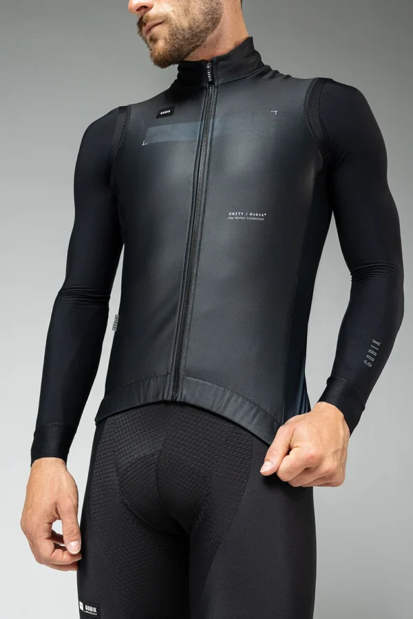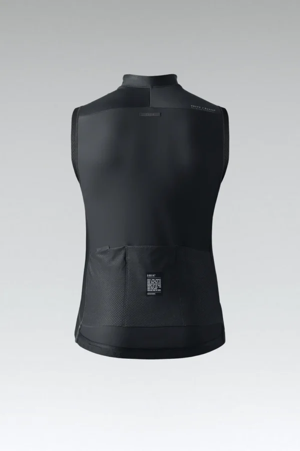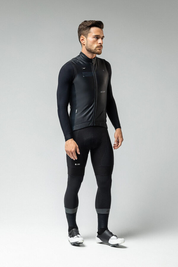 Ajuste aerodinâmico com neopreno nos ombros e fecho frontal selado.